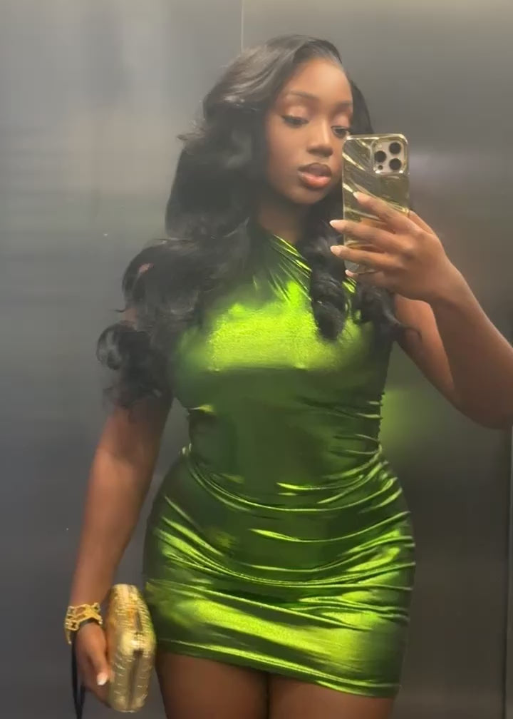 Dare to stand out in the Raven Dress – a one-shoulder mini with a striking metallic bronze finish. Designed with a sleek bodycon fit that sculpts your silhouette, this dress brings effortless drama to any autumn night out. Bold, glossy, and confident – it’s the statement piece your wardrobe has been waiting for.